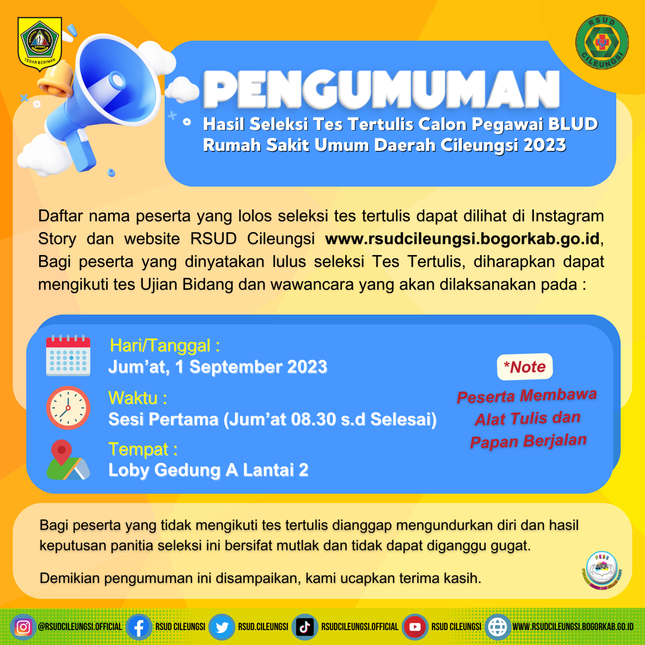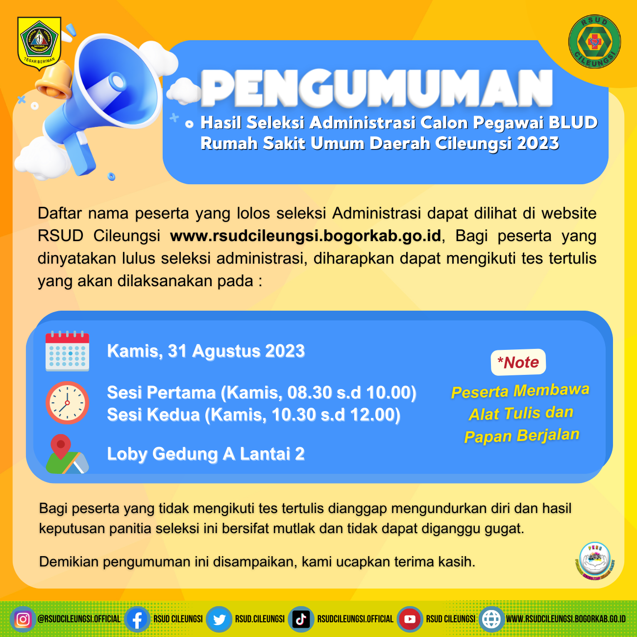 Jumat, 6 April 2018, diadakan Pengajian untuk memperingati Isra Mi’raj di masjid RSUD Cileungsi yang dihadiri oleh direktur dan seluruh karyawan. Pesan yang hendak disampaikan dalam peringatan ini adalah “Selalu mendirikan sholat”.