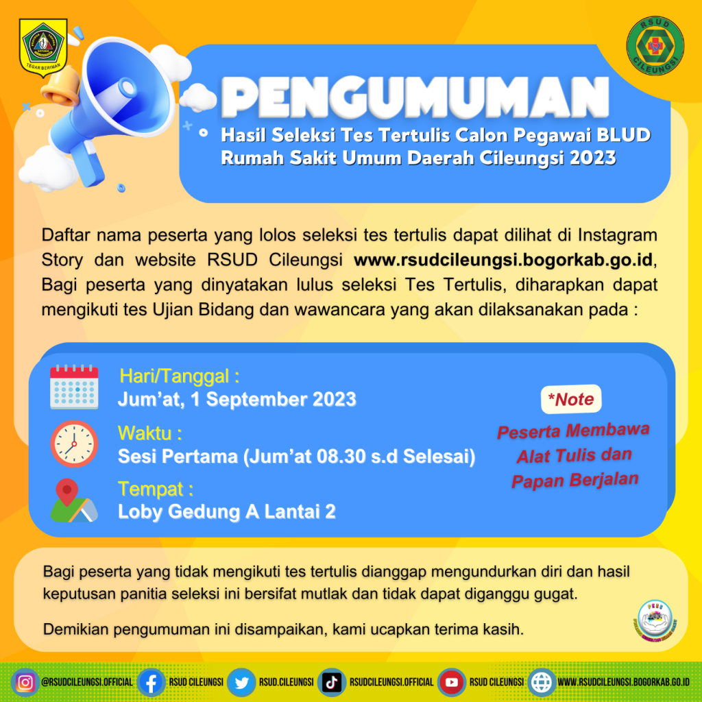 Bagi peserta yang dinyatakan lulus seleksi Tes Tertulis, diharapkan dapat mengikuti tes Ujian
